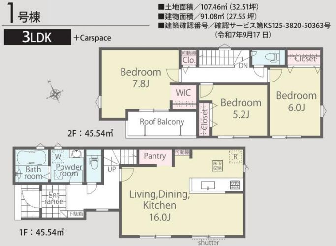 綾瀬市寺尾本町3丁目新築戸建て 第1期1号棟