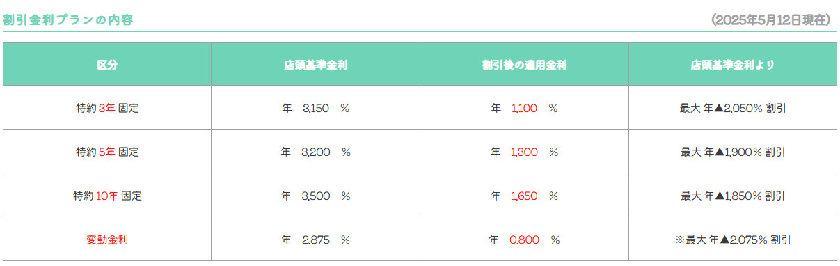 ※下記情報は各金融機関ホームページより引用しています。下記記載の金利は条件等ございますので