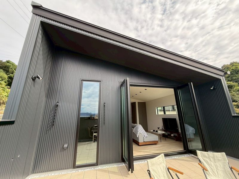 富士山を望む住まいでは、大きな窓やテラスを設けることで、室内から自然を一体として感じる設計が不可欠です。例えば、南向きや眺望の開けた位置に大開口を配置し、光と景観を効果的に取り込む工夫が見られます。建築士による設計では、太陽の光を採り入れる南面と眺望を考慮した大きな開口や、通風を考慮した縦長窓の配置で、快適な住空間を実現しています。これにより、富士山の景色と暮らす毎日が自然とつながります (片流れ屋根と窓配置による採光・通風の工夫)。