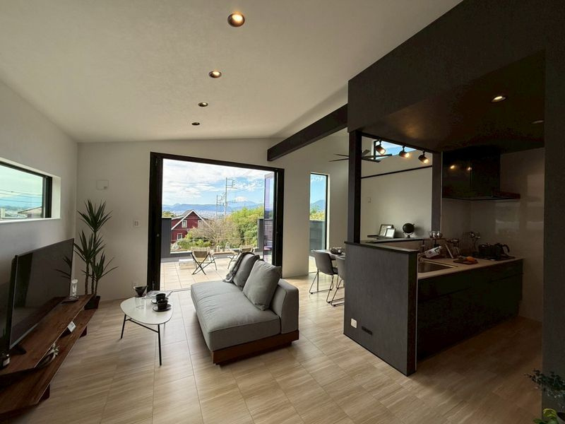 また、窓や開放的なリビングの設計には、視線や採光、通風のバランスが重視されます。たとえば、市内を見渡せるよう計画された大開口部により、日差しを取り入れつつ、夕方には柔らかな夕景をリビングに取り込むことが可能です。そして夜には窓越しに広がる夜景が、くつろぎの時間をさらに豊かに彩ります。